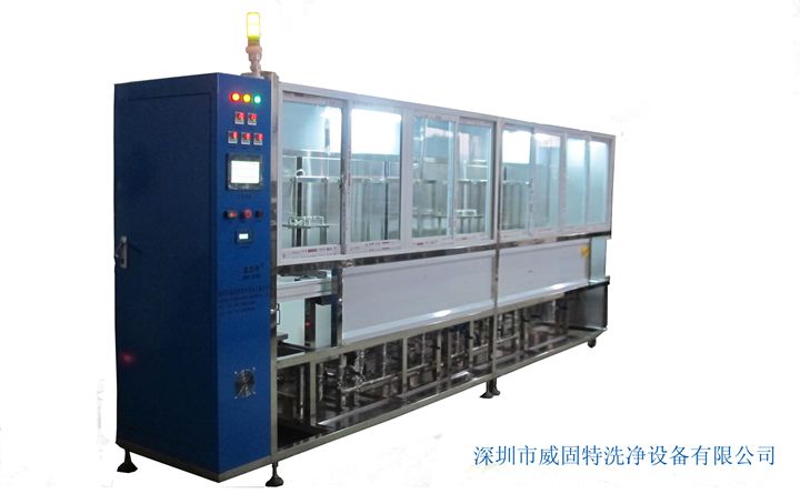 VGT-1409FT為離心甩干式光學(xué)超聲波清洗系統(tǒng),共有14個(gè)功能槽,配置有循環(huán)過(guò)濾系統(tǒng)、有機(jī)溶劑蒸餾回收系統(tǒng)、自動(dòng)恒溫系統(tǒng)、拋動(dòng)系統(tǒng)、超聲波清洗系統(tǒng)、抽風(fēng)系統(tǒng)、降噪系統(tǒng)、FFU系統(tǒng)、純水系統(tǒng)、離心甩干系統(tǒng)等。設(shè)備采用環(huán)保型有機(jī)溶劑洗滌、水溶劑洗滌、純水漂洗,為環(huán)保型清洗機(jī);