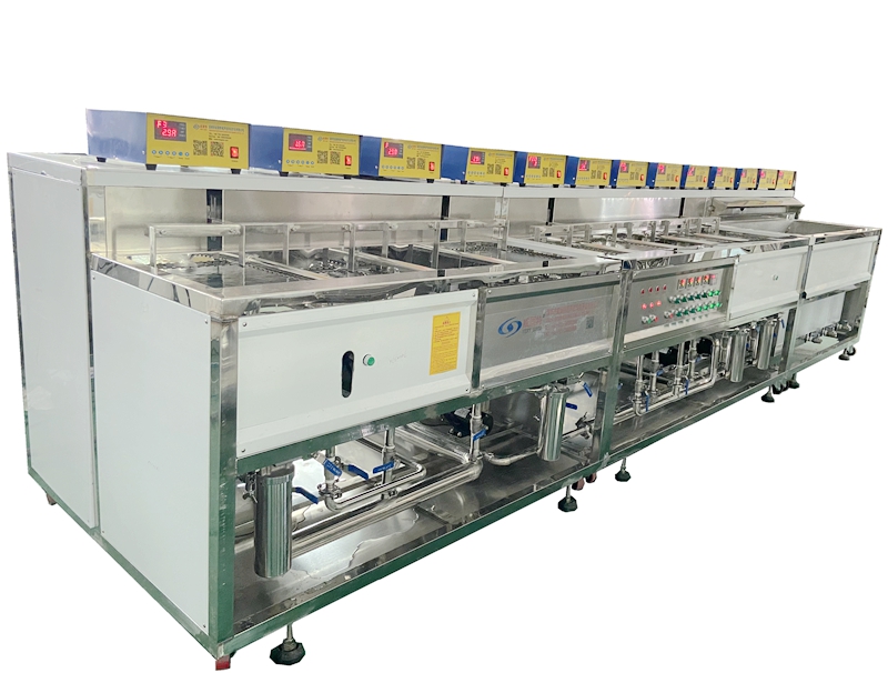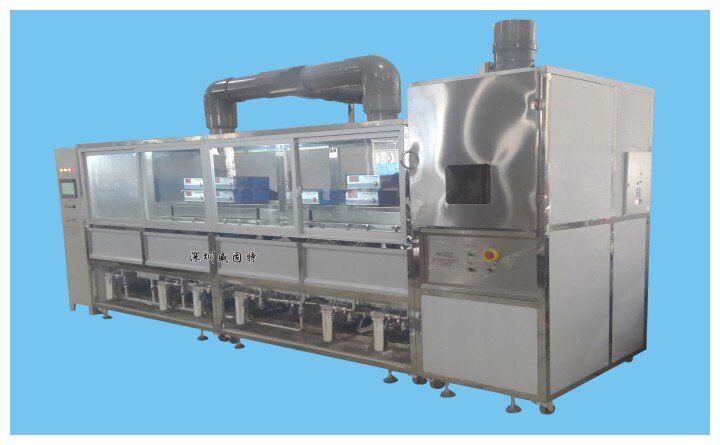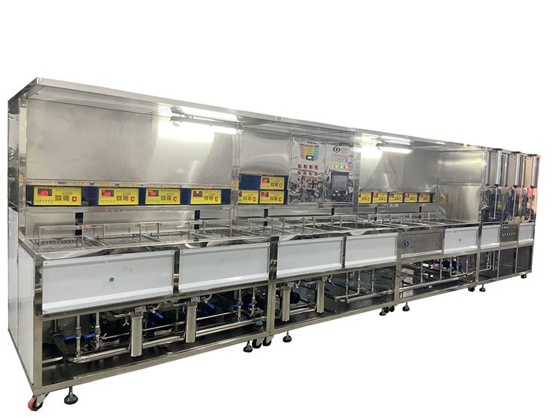 威固特VGT-609FTA超聲波清洗機(jī),設(shè)備共有6個(gè)功能槽,配置有循環(huán)過(guò)濾系統(tǒng)(袋式過(guò)濾系統(tǒng))、觸摸屏系統(tǒng)、拋動(dòng)系統(tǒng)、超聲波清洗系統(tǒng)、對(duì)流清洗系統(tǒng)、自動(dòng)智能式撥桿機(jī)械手系統(tǒng)、風(fēng)切系統(tǒng)等。