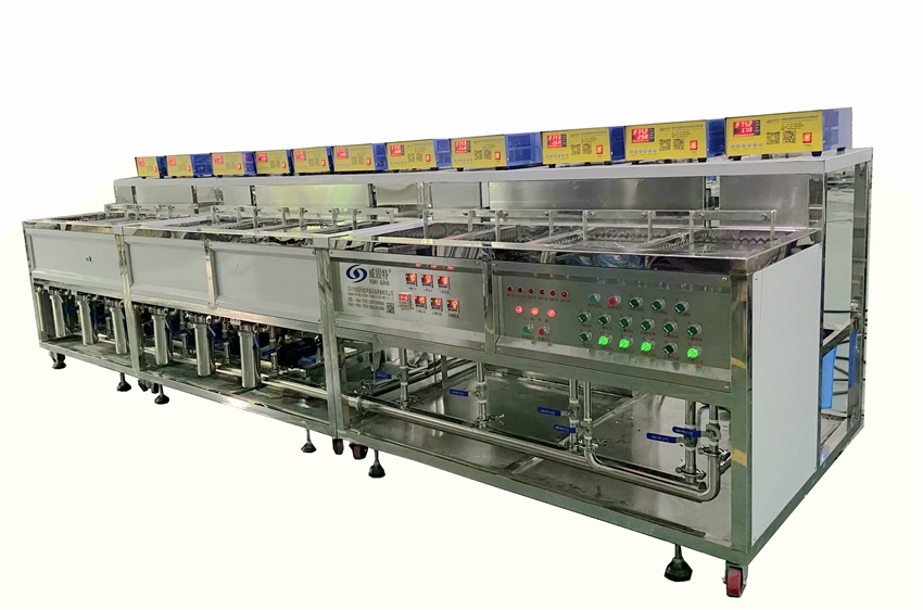 設(shè)備共有12個(gè)功能槽,配置有拋動(dòng)系統(tǒng)、循環(huán)過濾系統(tǒng)、自動(dòng)恒溫系統(tǒng)、超聲波清洗系統(tǒng)、定時(shí)系統(tǒng)、噴淋系統(tǒng)、慢拉脫水系統(tǒng)、熱風(fēng)烘干系統(tǒng)等。
