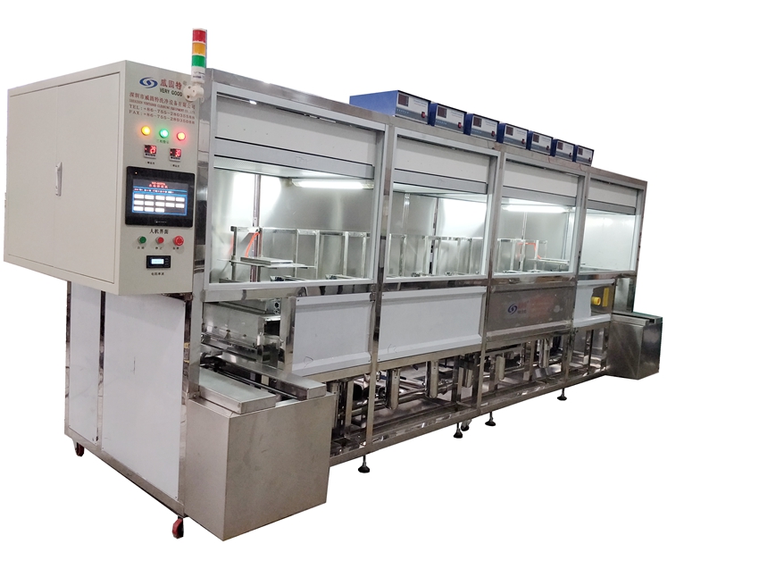 功能光學(xué)薄膜超聲波清洗機(jī)深圳威固特VGT-1009FH光學(xué)超聲波清洗機(jī),設(shè)備共有10個(gè)功能槽,配置有噴淋系統(tǒng)、循環(huán)過濾系統(tǒng)、自動(dòng)恒溫系統(tǒng)拋動(dòng)系統(tǒng)、超聲波清洗系統(tǒng)、拋動(dòng)系統(tǒng)、頂部框架系統(tǒng)、熱風(fēng)烘干系統(tǒng)(百級(jí)FFU)、定時(shí)系統(tǒng)等。